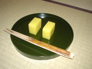 武家社会のむかし、身分の違うお武家様に恋をした女性が、かなわぬ想いを筆にしたためたものの、 恋文を渡すに渡せず、丸めて川に流したその様を「おとし文」といったそうです。 そのはかない恋心を想わすほろほろとした切ない口どけを表したのが、清月堂本店看板商品になっているそうです。 黄身餡を漉し餡で包み、蒸気を当てたお菓子。 材料は、こだわりの卵と北海道産の小豆、徳島産の和三盆、厳選された素材を使っているそうです。 東京みやげには必ずその名が出てくるこのお菓子は小ぶりでお煎茶にもよく合いそうです。