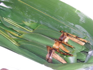 ニ枚の笹の葉で包まれていて、いい香りがします。