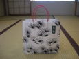 ”老松”さんの手提げ袋。黒の松。赤の持ち手は、古き良きもののデザインなのでしょうか?素敵!