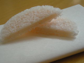 薄いピンク色した軽いお煎餅のようなお菓子は、お米の香りが良く、品があります。
