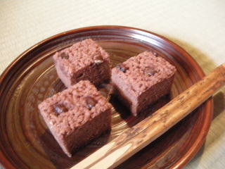 縁起の良い機会に出されるお赤飯を意匠して作られたこのお店の代表銘菓。