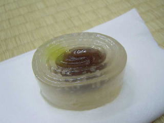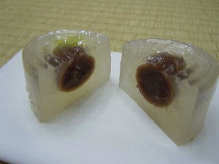 透明な寒天だけでは、単調になってしまうそれに、緑が目に鮮やかです。