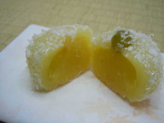 お餅は鮮やかな黄色で、氷餅がまぶしてあって優しい感じがいたします。