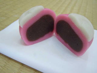 白、ピンク、こしあんのコントラストも美しい、師走を彩る艶やかな上生菓子でした。
