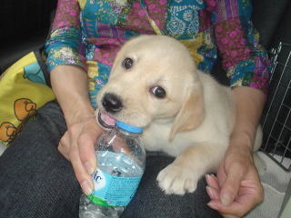 一日三食。大匙3の幼犬用フードを水にふやかしたものをワシワシと一回も顔をあげずに食べる。