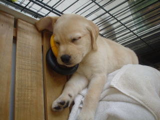 体重7月4日、4kg→本日4.8kg 4日間で0,8kg.の増加。 ドアストッパーがお気に入り。 目が放せない。 ゴム製品、靴下、手袋、タオル、 要注意のもの、多数あり…。 成長時だからか? 今日の写真のお顔はとってもブサイク!