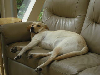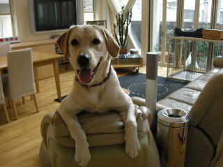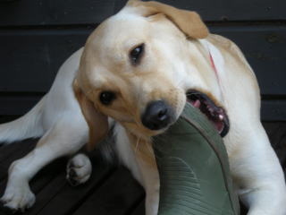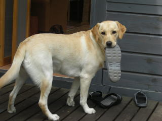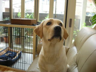 このところ、白っぽかった毛色が茶色っぽくなり、イエローラブらしくなりました。