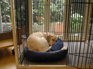 今現在は、熟睡したい時はこのケージで、babyだった頃に使っていたベッドに、まあるくなって寝ています。