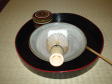 ● 山道盆の上に仕組んだ茶碗と棗を置く。
