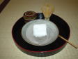直径30cmほどの丸盆の上に、必要な道具を乗せて行なうお点前が、