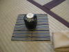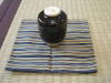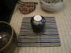 9、さきに広げてある古帛紗の上に茶入を置く。