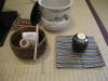 ・ 茶入れには客の人数分の茶を入れ、仕覆に入れ緒を結んでおく(一人、三杓、3.75g)