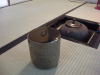 ● 次客がお茶をいただいている頃、正客は菓子器を持って出て、正面を正し、水指の下座に置く。