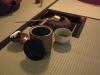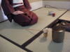 5、次に右手に棗、左手に茶碗を持ち、右足から席に入る。