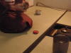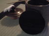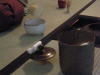 12、右手で棗を取って、茶碗とひざの間に置く。