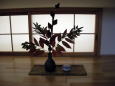 茶花 リョウブの葉、山法師の実、蔓梅擬